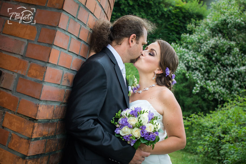 Den začal nebem bez jediného mráčku a s neskutečným horkem, ale postupně se počasí změnilo tak, že během obřadu už bylo polojasno a při focení portrétů jsme měli strach, že nás zastihnou kroupy… ty se nakonec nekonaly, ale přeci jen v podvečer na hostině i trocha toho štěstí novomanželům zapršela…