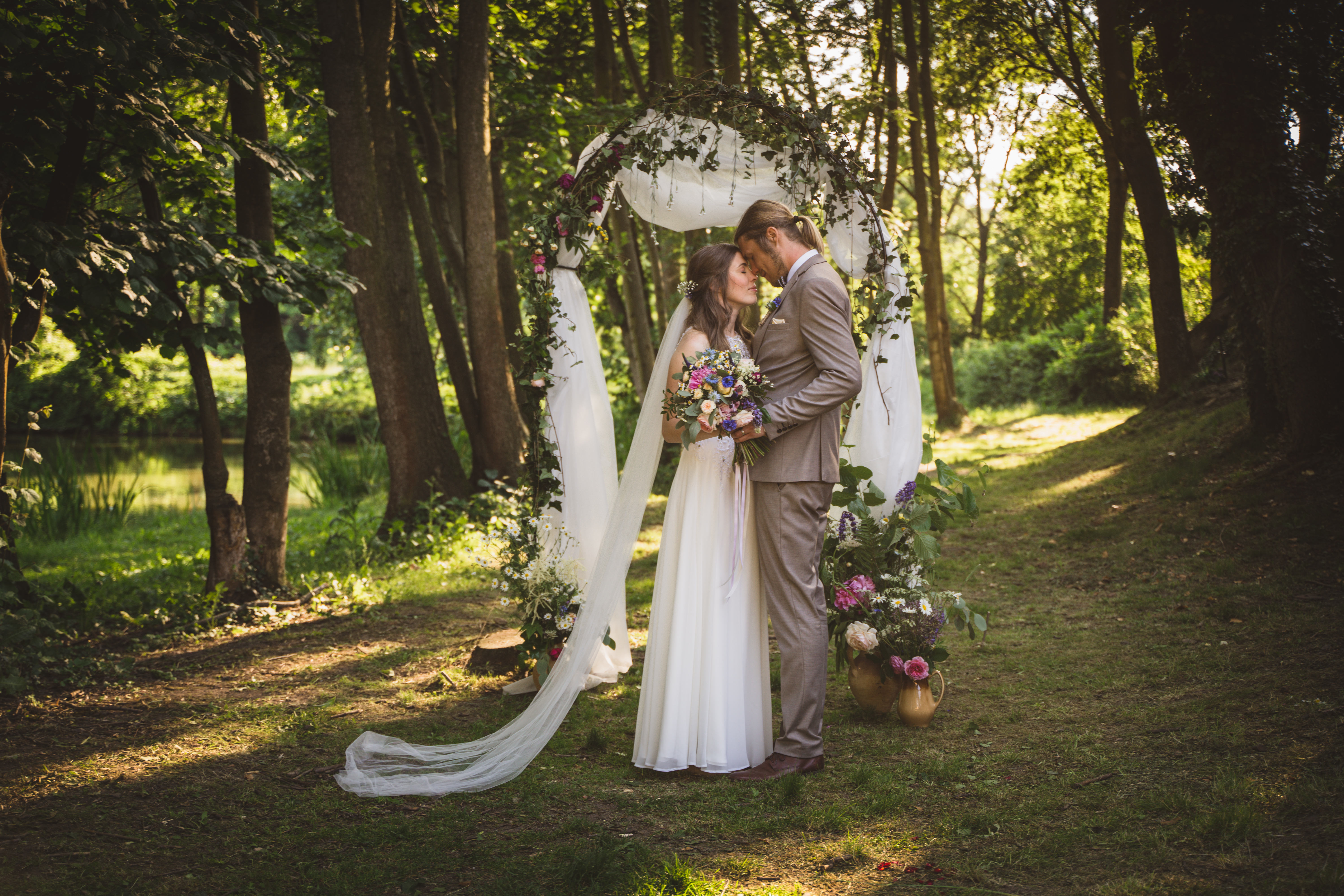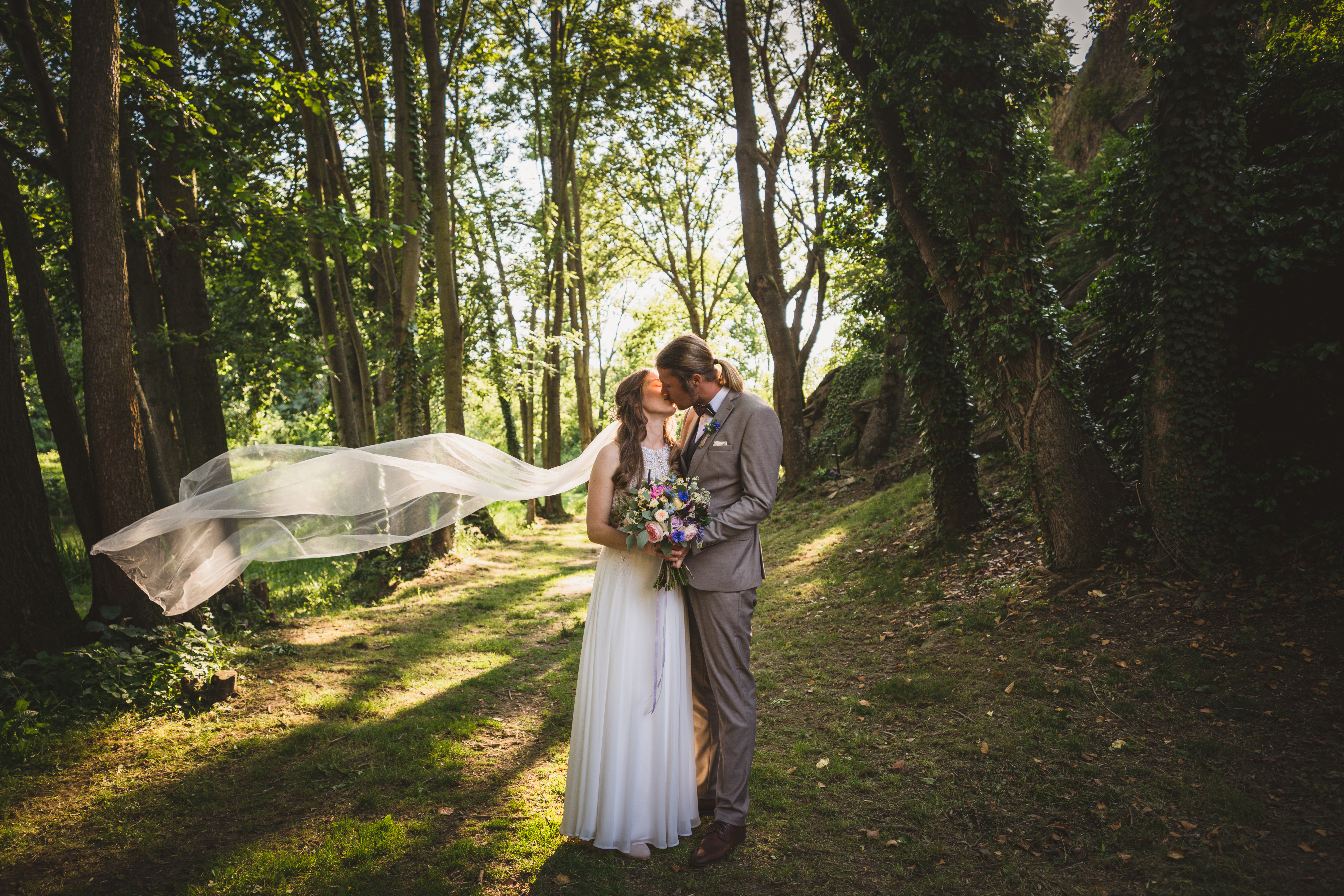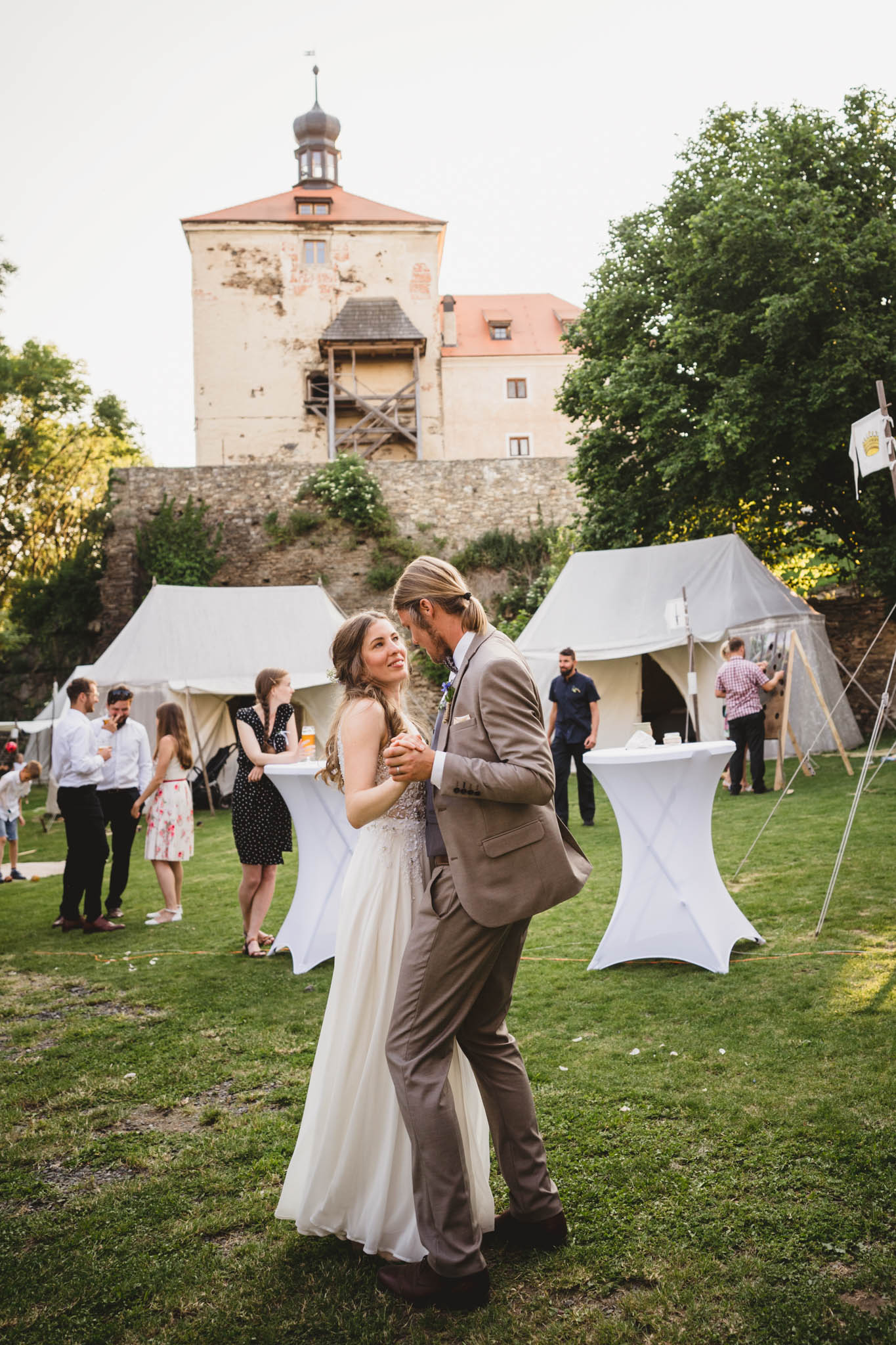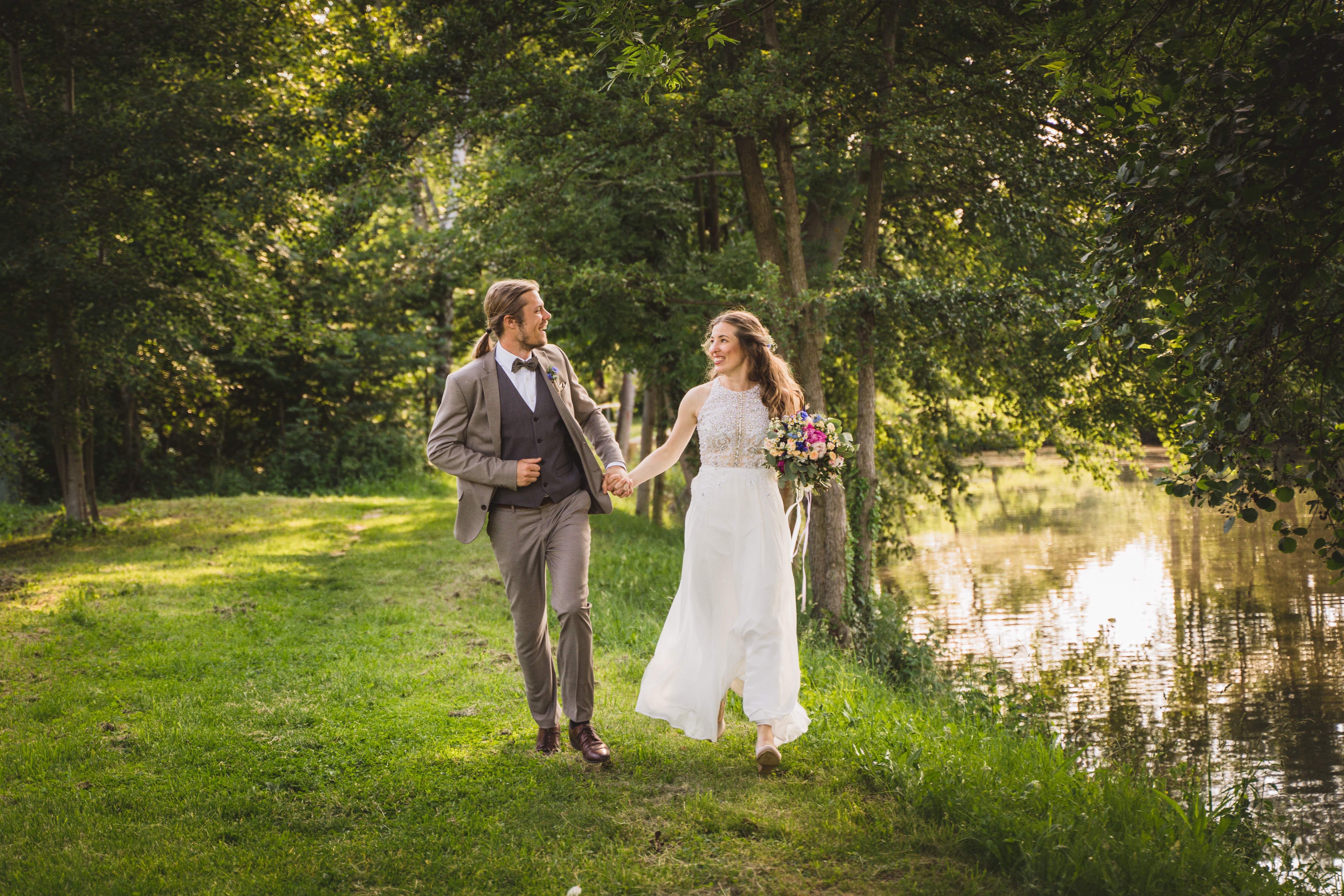 Kateřina a Jan měli pohodovou svatbu u rybníka pod tvrzí Malešov, hned v těsné blízkosti pak i hostinu v Krčmě na konci světa.. Na focení novomanželských portrétů jsme tak odběhli zpět k rybníku až když hostina byla v plném proudu a začínalo být příjemné podvečerní světlo, které je na focení prostě nejlepší. A novomanželé byli nejel krásně romantičtí, ale dokonce se dali i do běhu, skoku:-)