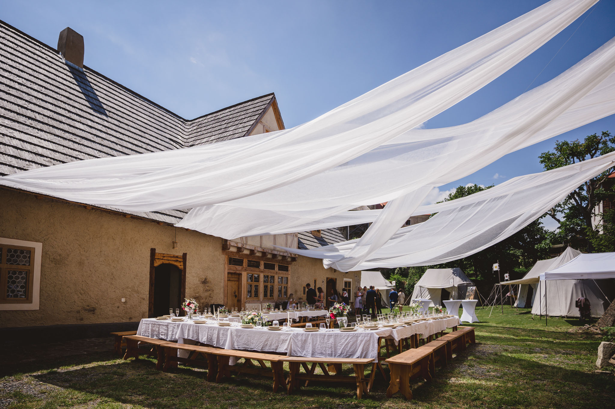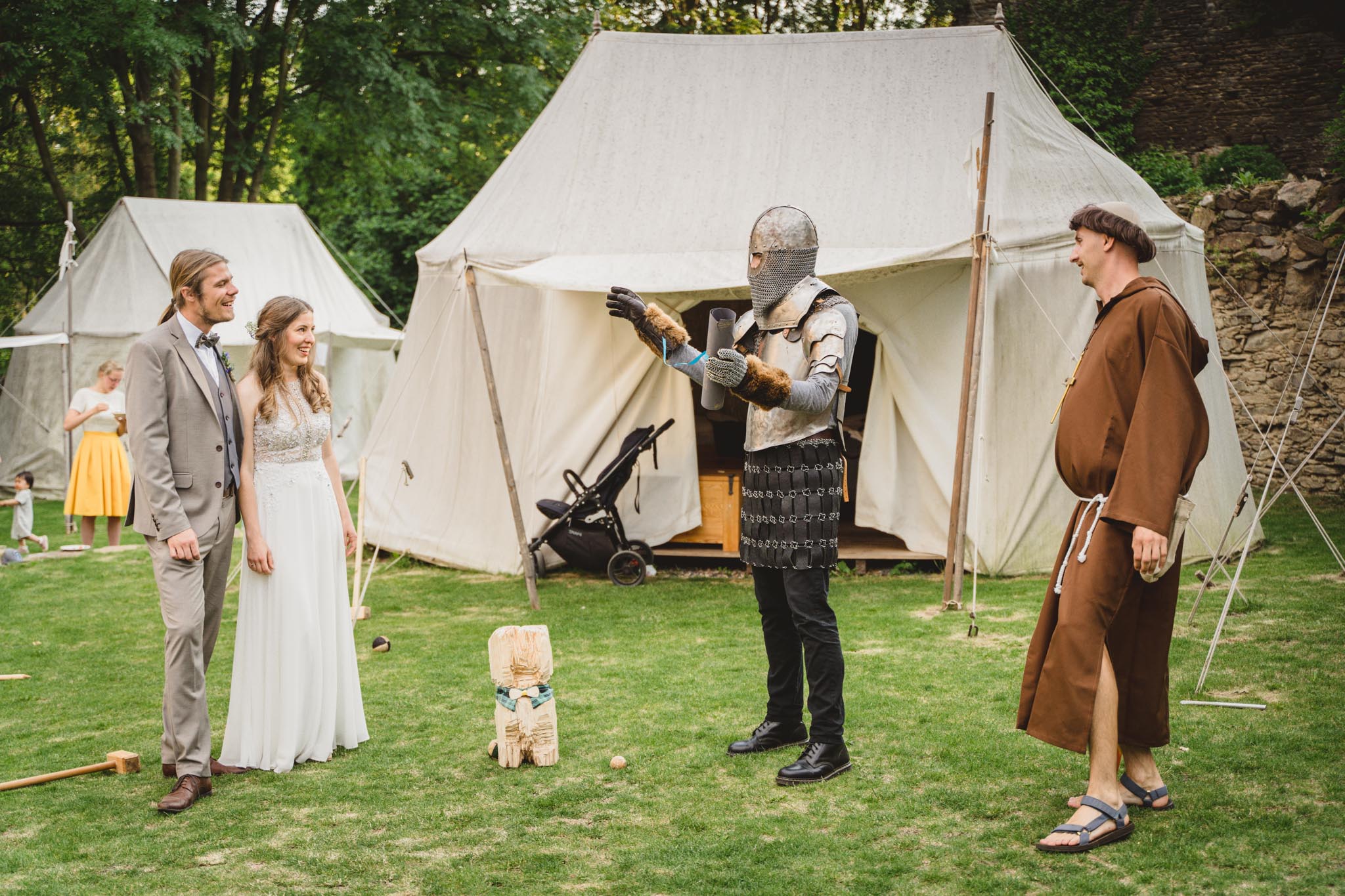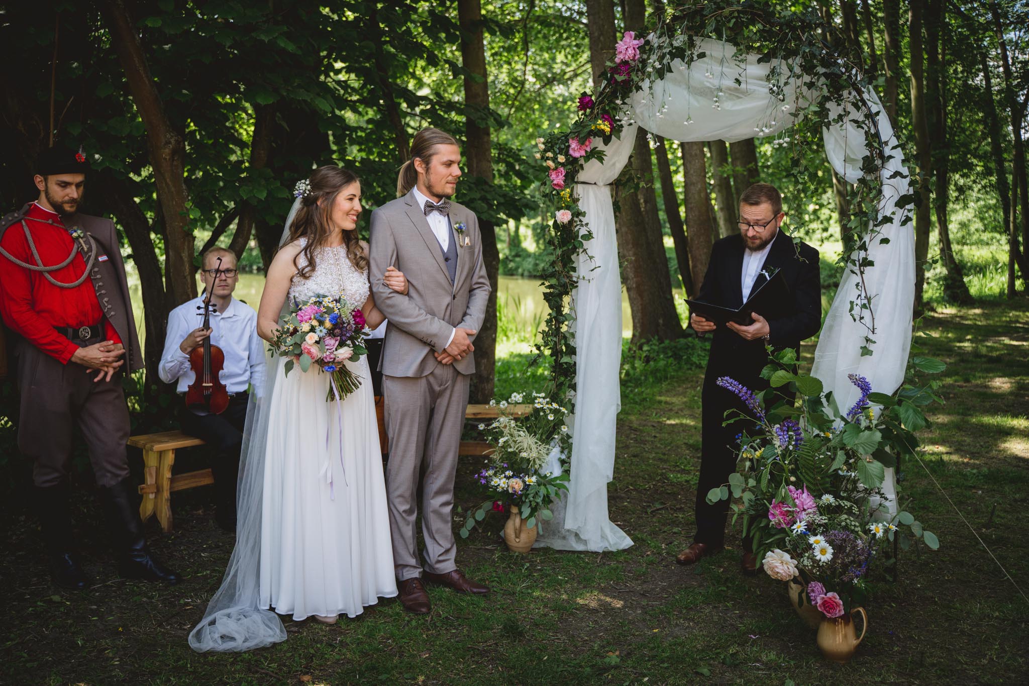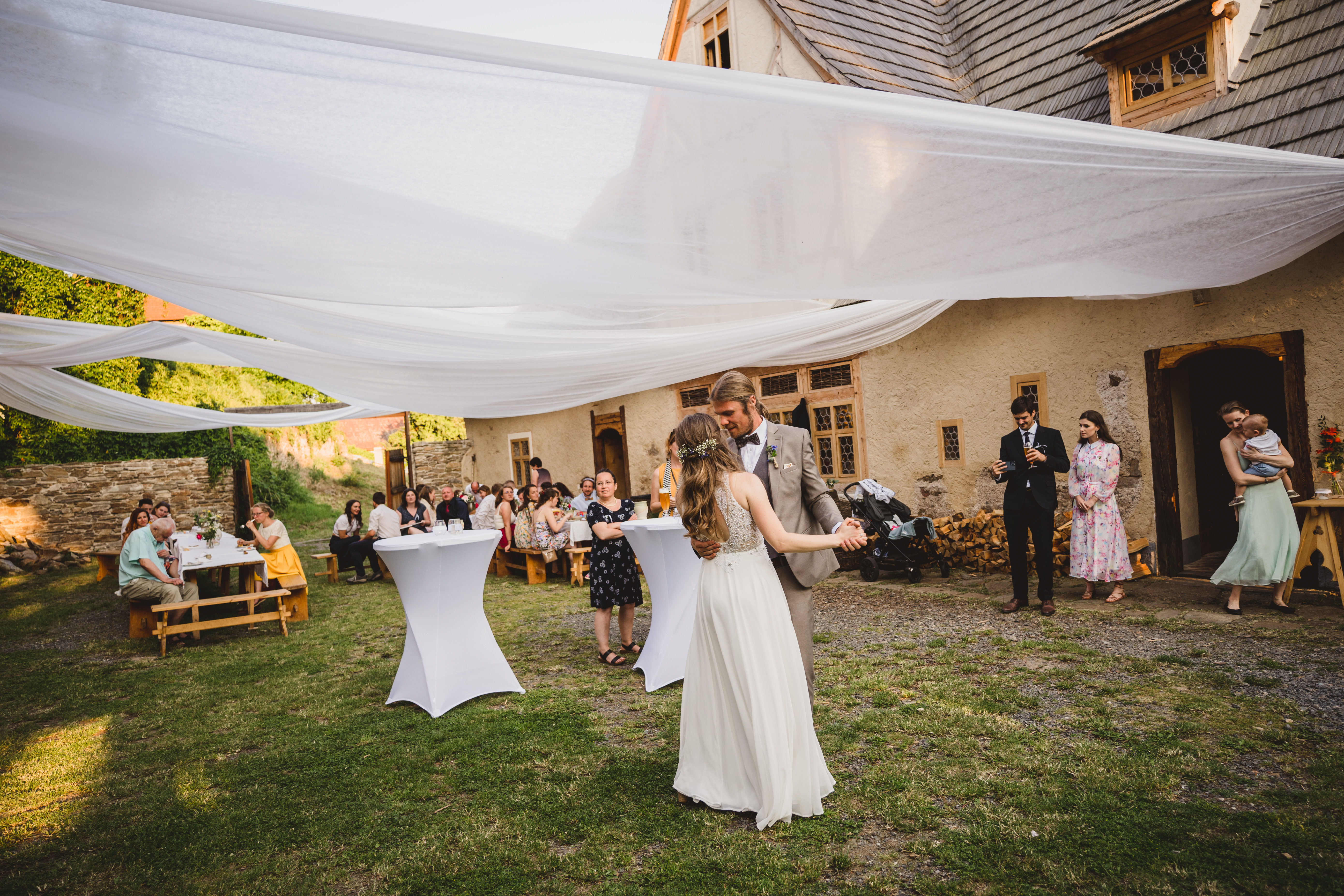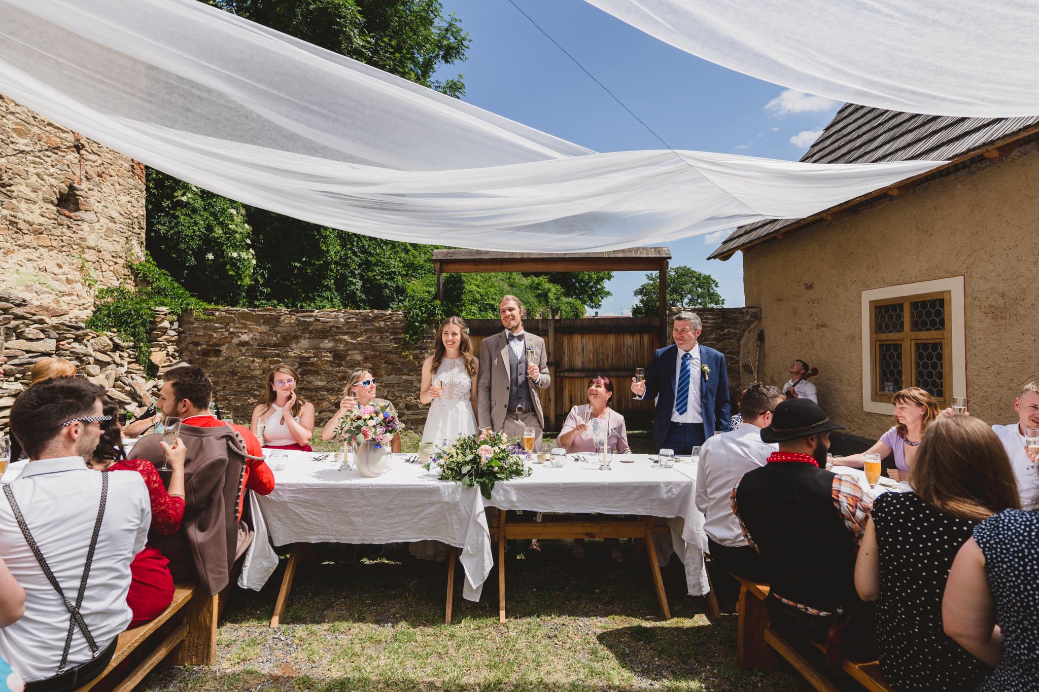 Kateřina a Jan měli pohodovou svatbu u rybníka pod tvrzí Malešov, hned v těsné blízkosti pak i hostinu v Krčmě na konci světa.. Na focení novomanželských portrétů jsme tak odběhli zpět k rybníku až když hostina byla v plném proudu a začínalo být příjemné podvečerní světlo, které je na focení prostě nejlepší. A novomanželé byli nejel krásně romantičtí, ale dokonce se dali i do běhu, skoku:-)