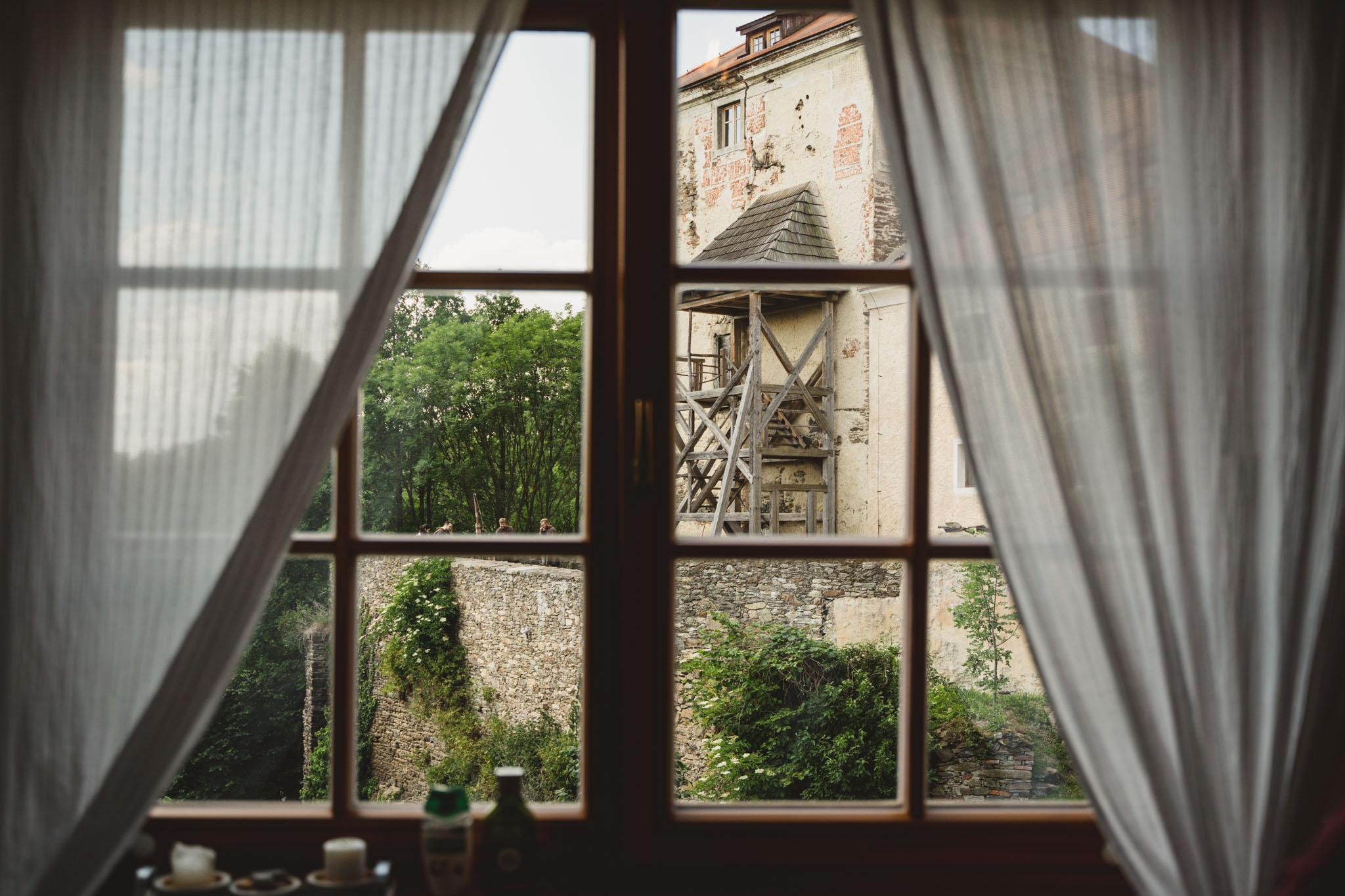 Další parádní místo, které jsem jako svatební fotografka měla možnost navštívit je Krčma na konci světa. Obřad může být nedaleko u malebného ryblíčku pod skálou, na které je středověká tvrz ,a přípravy nevěsty mohou proběhnout třeba v Ubytování u Fraňků s výhledem na tvrz i Krčmu.